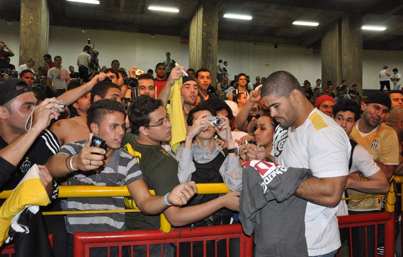 O UFC Silva vs Franklin será realizado no sábado (23/06), mas Belo Horizonte já pôde sentir o clima esquentar de vez na véspera do evento. O Ginásio Mineirinho recebeu um numeroso e entusiasmado público, em tarde marcada por autógrafos, bate-papo com ídolos e encaradas polêmicas entre os lutadores.