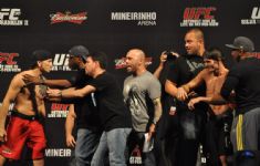 Encerrada a conversa com os gigantes do octógono, chegou o momento mais esperado do dia: a pesagem dos lutadores. Mesmo provavelmente extenuados pelo processo de perda de peso, os atletas não demonstraram sinal algum de desconforto. Muito pelo contrário, o que sobrou foi disposição e até mesmo, provocações pesadas na hora da tradicional encarada.